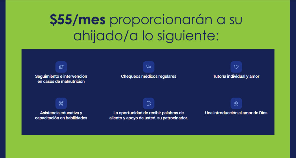 Al patrocinar a un niño, compartirás la esperanza del evangelio con un niño que lo necesita desesperadamente, brindándole la ayuda práctica que necesita para escapar de la pobreza. Patrocina a un niño y comprueba que los corazones pequeños pueden llegar a tener una fe GIGANTE.